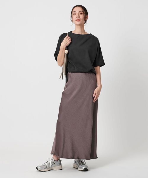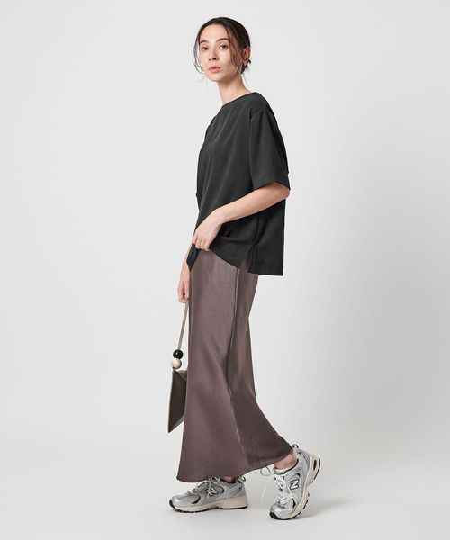 体のラインを拾いにくい少しルーズなサイズ感で、サイドはスリット入り。