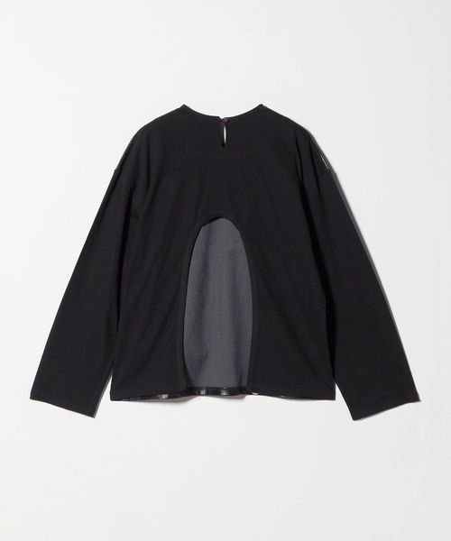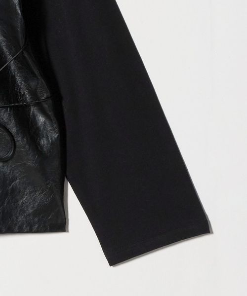 リアルな風合いの型押しされたレザーライク素材のフロントと、袖から後ろはカットソー切り替えになっており、異なる質感が楽しめる一着です。