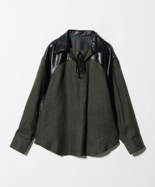 <muller of yoshiokubo>レザーライク コンビネーション レースアップトップス