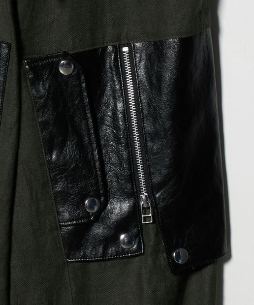 やわらかくあたたかな肌当たりの起毛感のある麻と、レザーライクな素材のミックス感が楽しめる一着。
