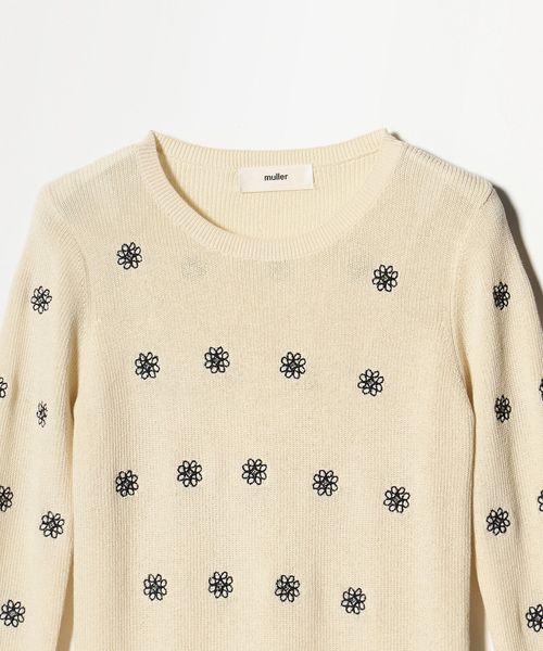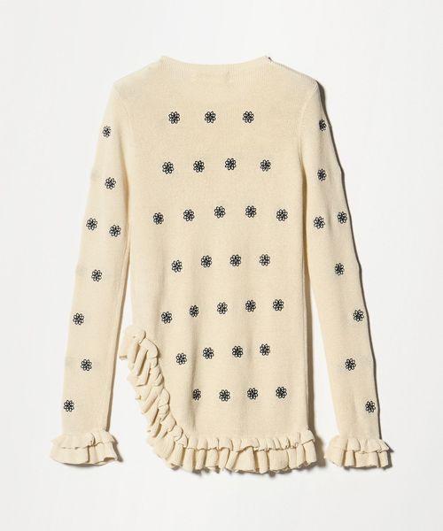 ブランドオリジナルの花柄刺繍が愛らしいニットトップス。