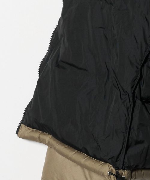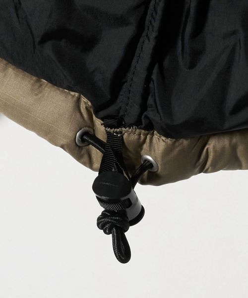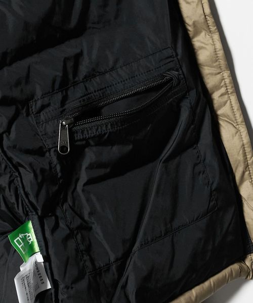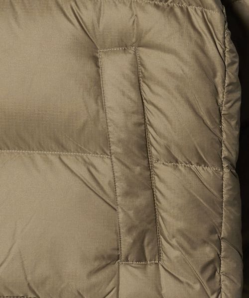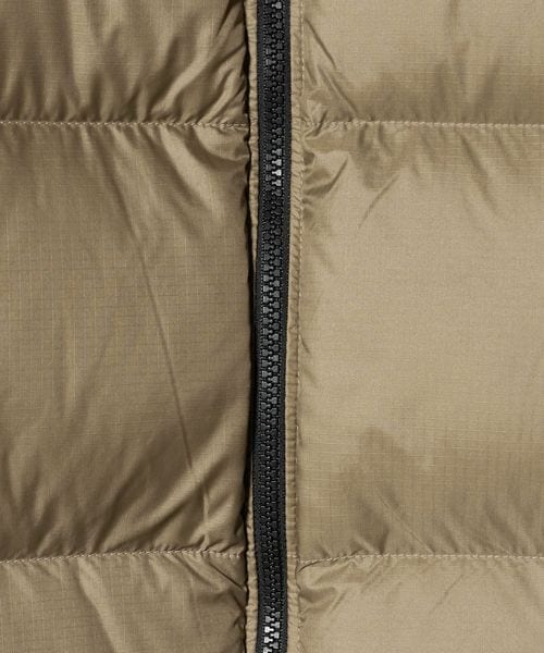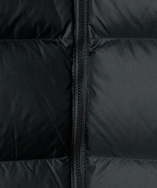表地ははっ水加工と静電気防止加工が施され、環境に配慮したリサイクルダウンを中綿の一部に使用。