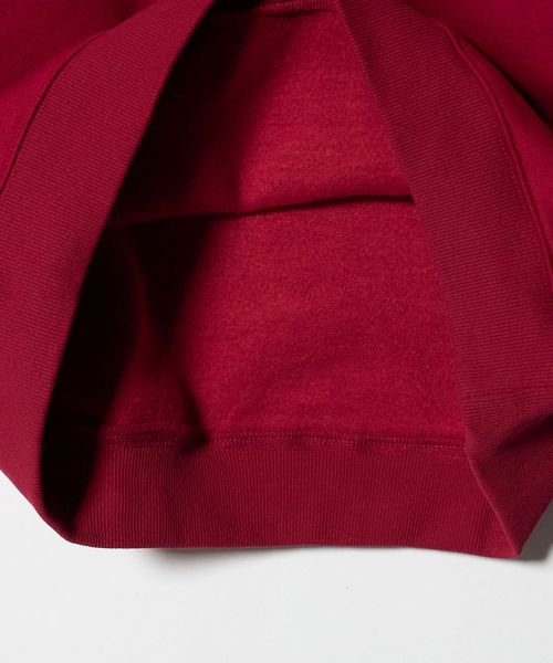 鮮やかなレッドのボディに、胸元には店名がホワイトの刺繍で施されています。