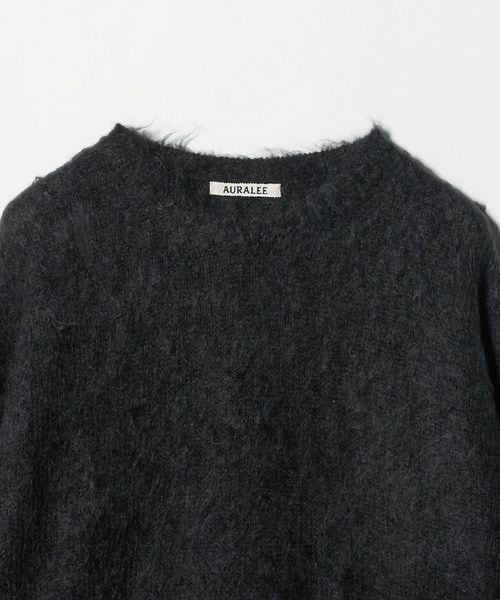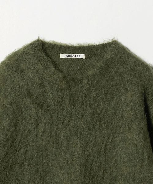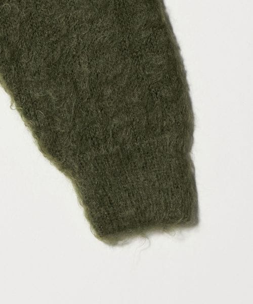 モヘヤを甘撚りに紡績し、芯糸にやわらかなウールを使用して編み上げた、ふんわりとあたたかみが感じられる上質なモヘヤニットです。