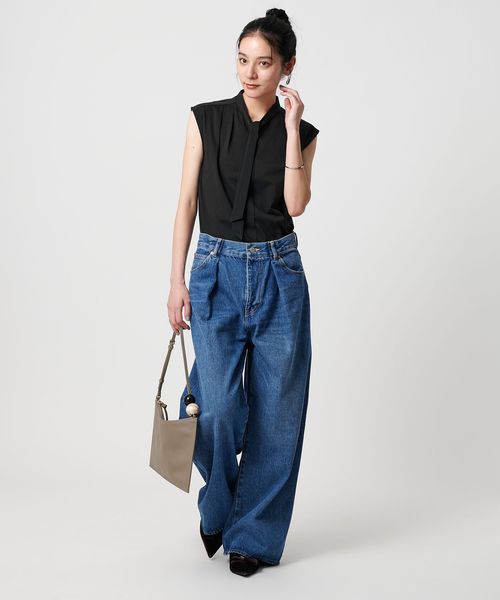 アレンジ自由なリボンタイ付きのデザインが女性らしさを引き立てながらも甘くなりすぎず、洗練された印象を演出。