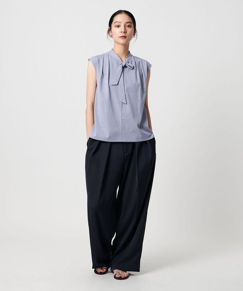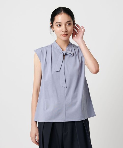 【WEB限定】ボウタイ スタンドカラーノースリーブTシャツ ―汗染み防止―