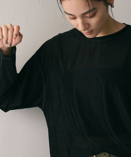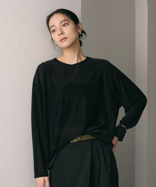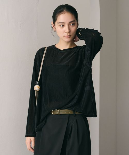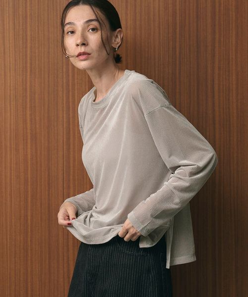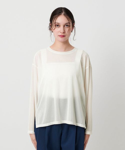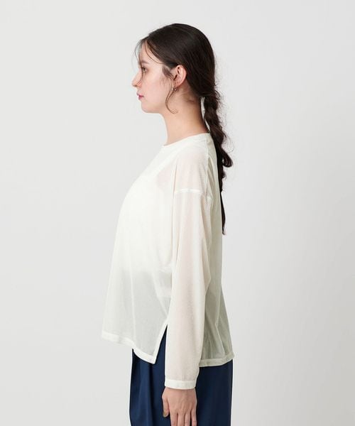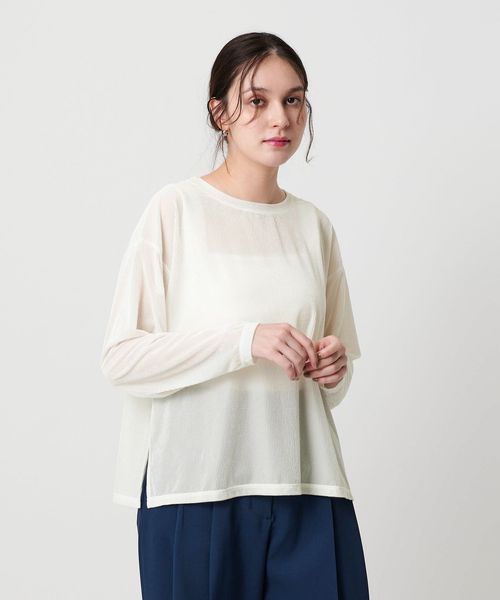 透け感があることで暑いシーズンから着やすく、インナーとのレイヤードを楽しんでいただけます。