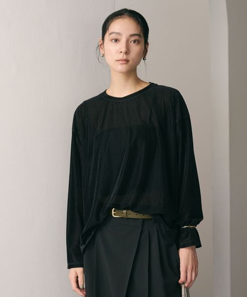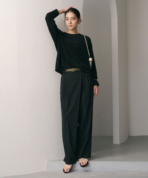 ベロア生地で秋を先取る、大人の抜け感漂うベロアトップス。
