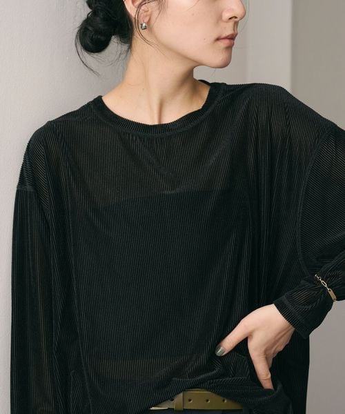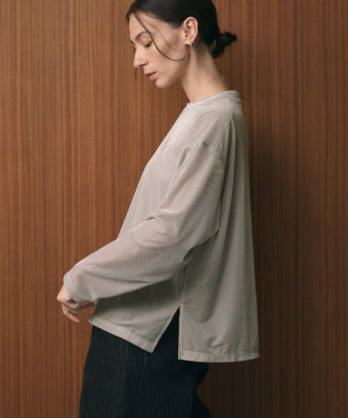 サイドスリット入りのワイドシルエットで、ルーズに着られるロングスリーブTシャツ。