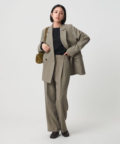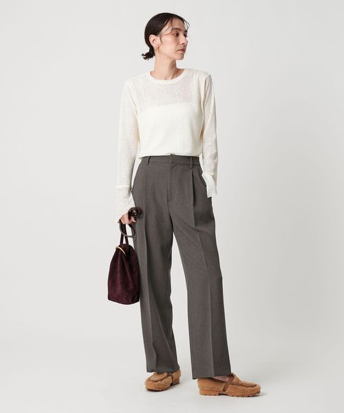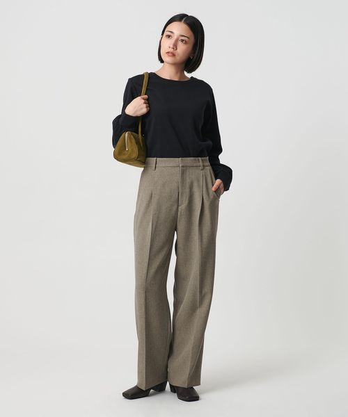 ブラウスやパンプスを合わせてお仕事にお使いいただく以外にも、スウェットやざっくりしたニットなどのカジュアルアイテムにも馴染みます。