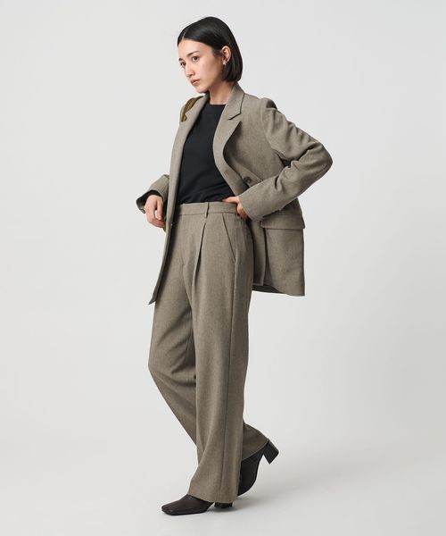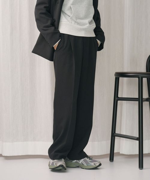 タックの立体感とセンタープレスが入ったきちんとした印象ながら、バックゴムの楽なはき心地が嬉しいパンツ。