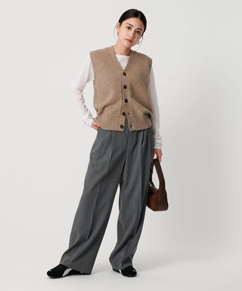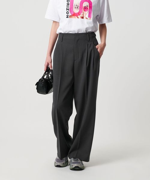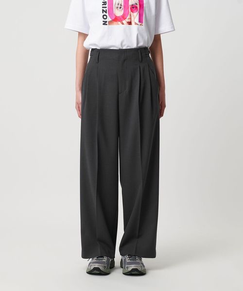 ポリエステルブレンド 2タック タブワイドパンツ