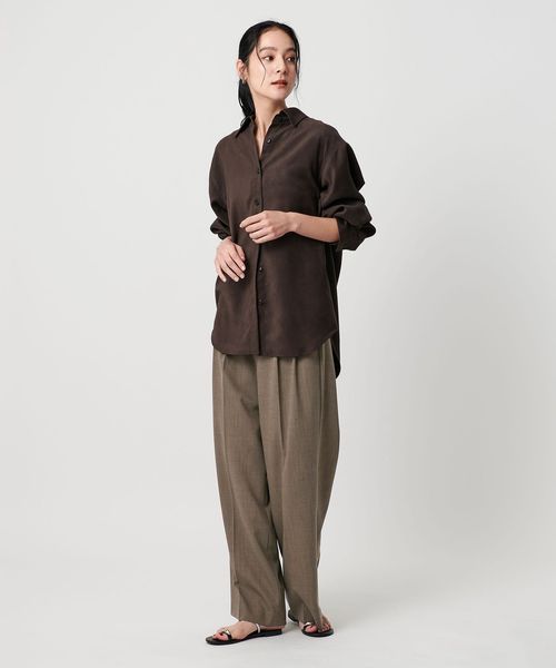 裾幅はゆったりとしながらも腰周りはボリュームが出過ぎないワイドストレートのシルエット。