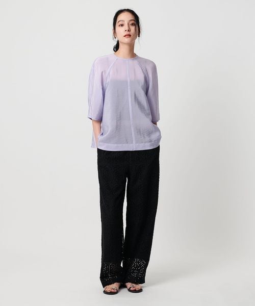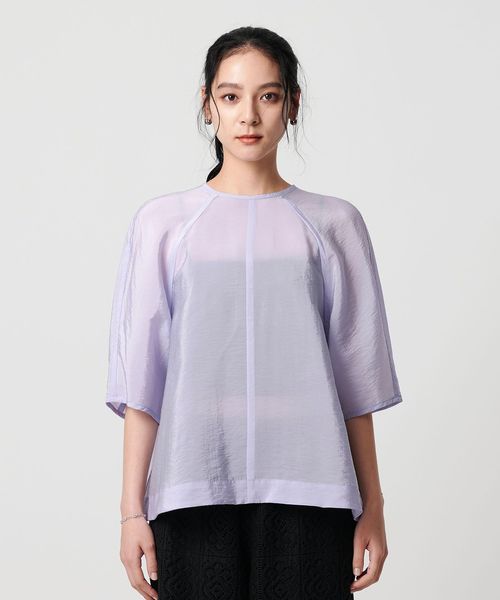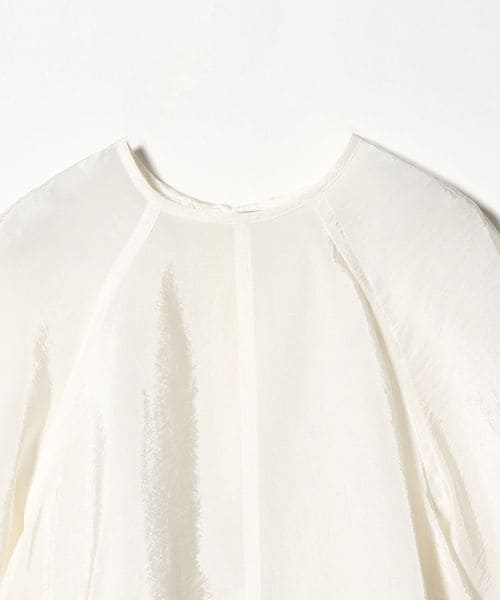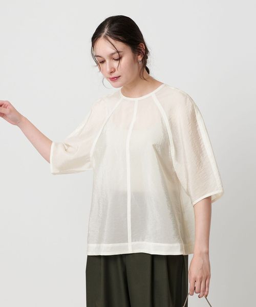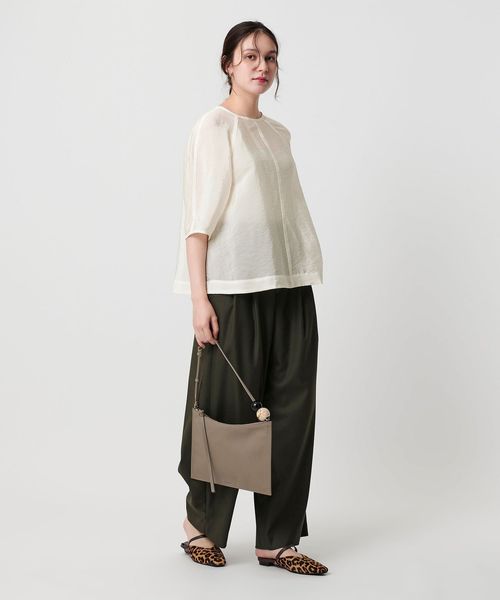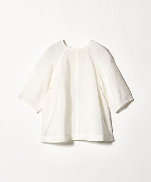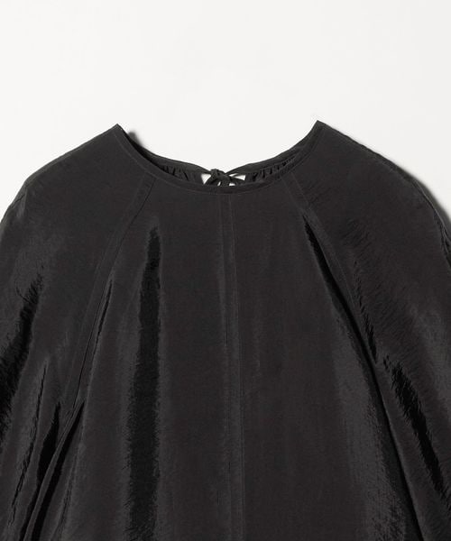 光沢感が美しいボリュームスリーブのブラウスは、Tシャツ頼りな暑い時季に変化をもたらしてくれるアイテム。