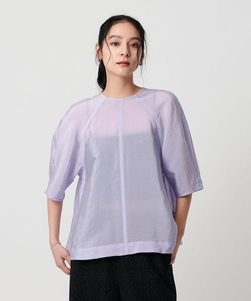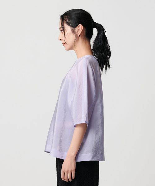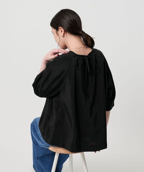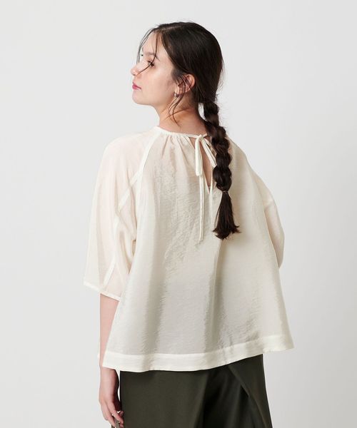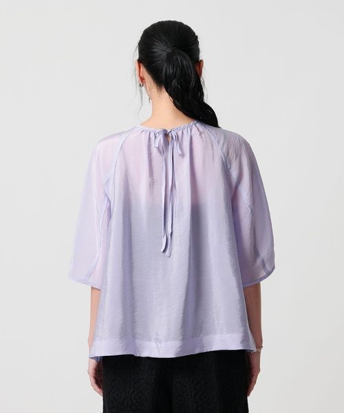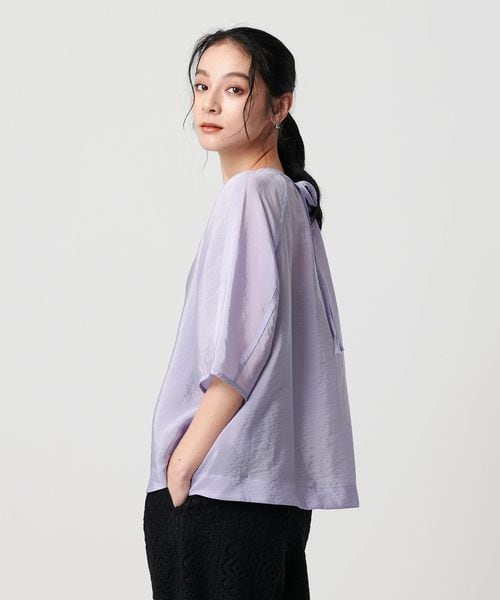 キュプラナイロン バックリボン ショートスリーブブラウス
