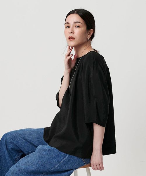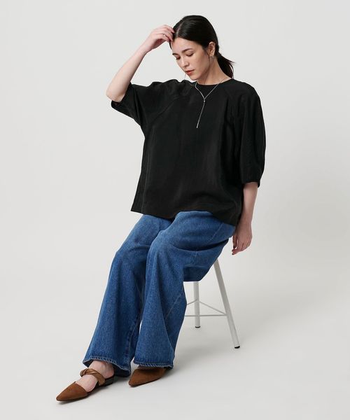 カジュアルボトムに合わせたい品のあるツヤブラウス