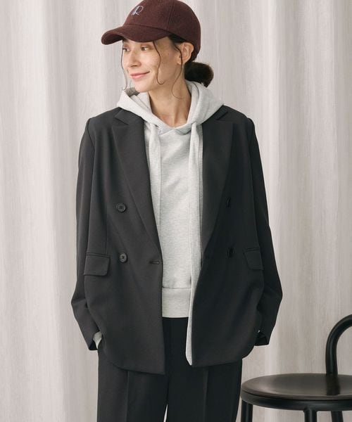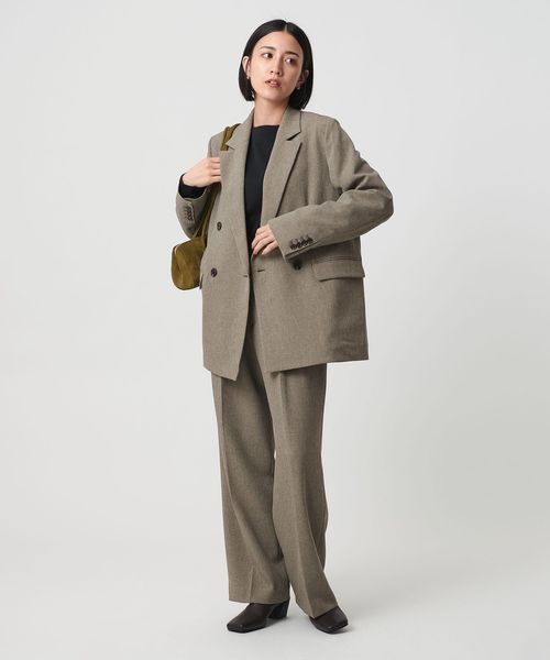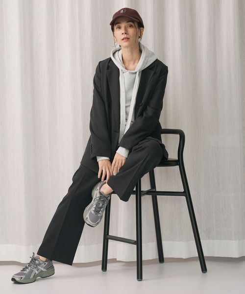 同素材でお作りしたパンツとセットアップでお仕事用に使うのはもちろん、インナーをフーディにしたり足元をスニーカーで外したカジュアルな装いもおすすめです。