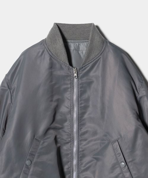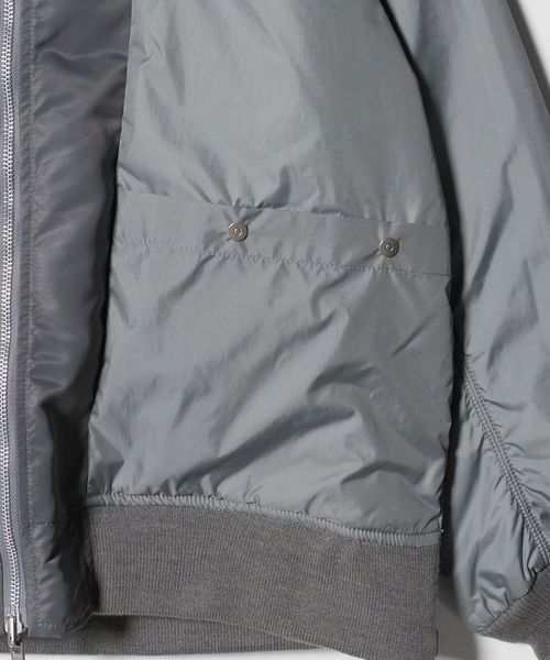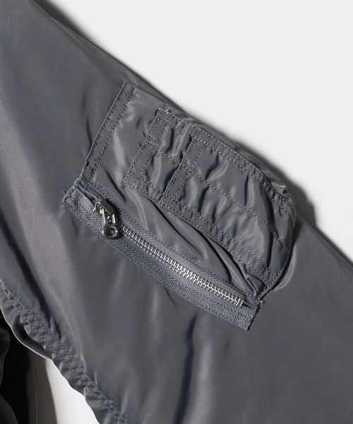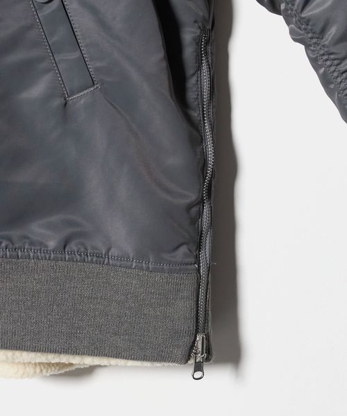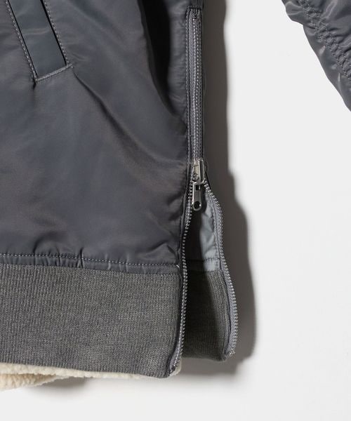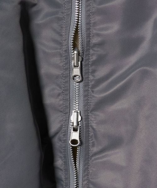 グレーがクリーンな印象のMA-1はサイドジップを開けるとスリットの抜け感が楽しめる仕様になっています。