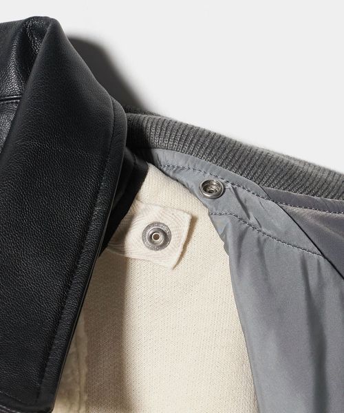 防寒面も頼れるボアライナーは襟部分がレザーに切り替えられヴィンテージムードが薫ります。