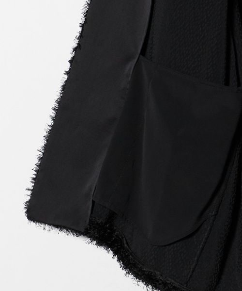 襟と袖口のカフスをサテンで切り替えることで、奥行きのあるコントラストを演出し、より一層エレガントな表情を引き立ててくれる一着です。