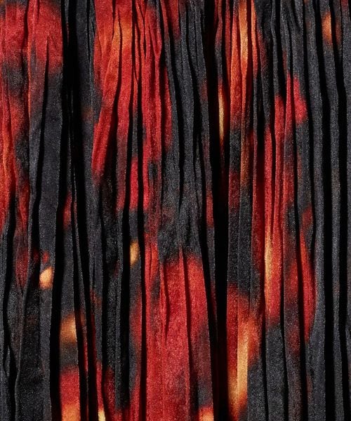 ランダムに入る細かなプリーツと裾に向かって消えかけたような大きなプリーツを組み合わせることで、より立体的で幽艶なシルエットを演出します。