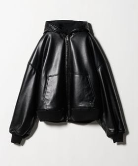 スウェットフーディのデザインをレザーライクな素材で表現したブルゾン。