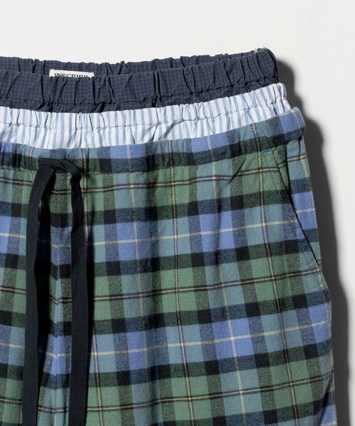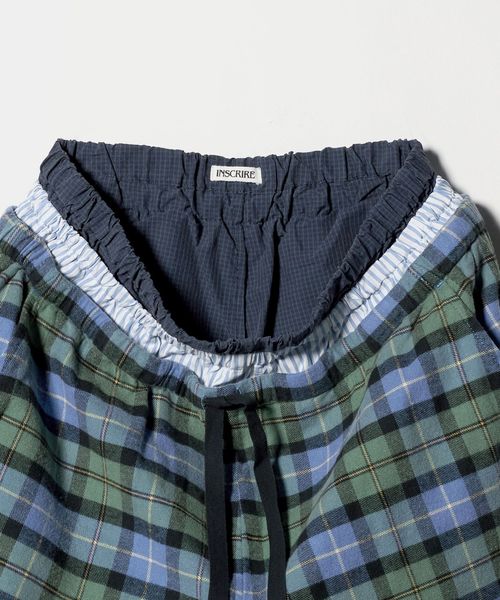 こなれたパジャマムードを醸し出す<INSCRIRE>のチェックパンツ