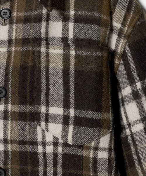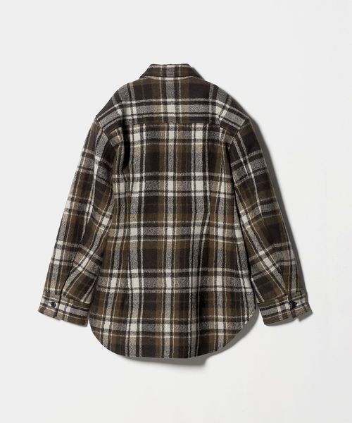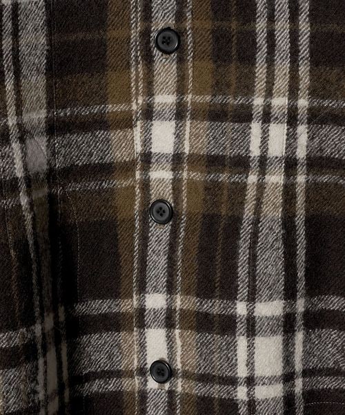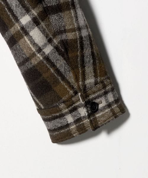 起毛したウォーム感ある生地とブラウンのチェック柄がシーズンムード溢れるシャツ。