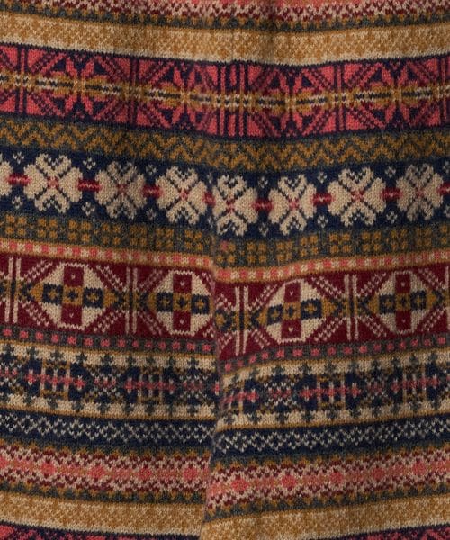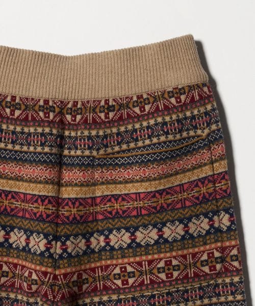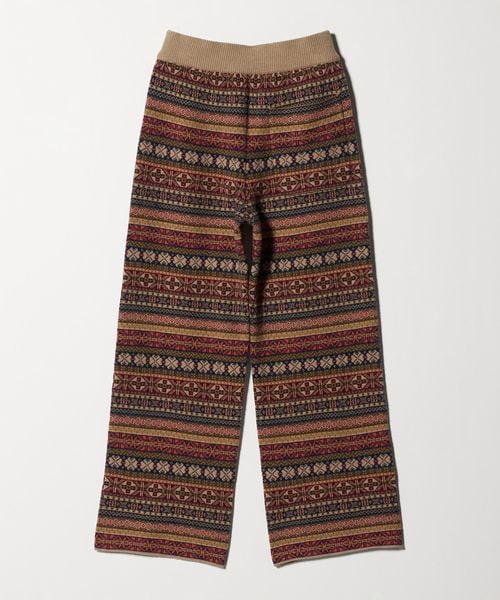 全面の賑やかなフェアアイル柄が目を引くニットパンツ。