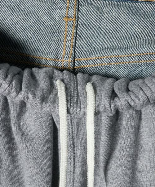 デニムとスウェットが組み合わさったハイブリッドなパンツ。