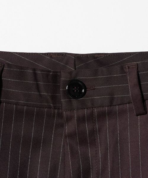 鮮度のあるブラウンカラーのピンストライプで一味違ったメンズライクな装いが叶う一着。