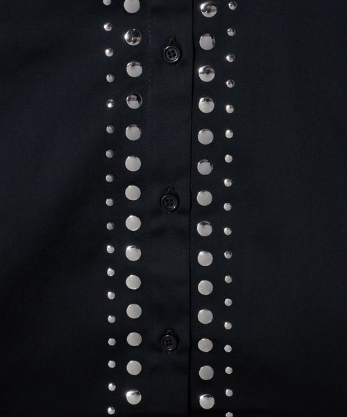 ボタンのサイドに大小2種類のスタッズが施され、クラフト感がありながらもエッジの効いた個性ある一着です。