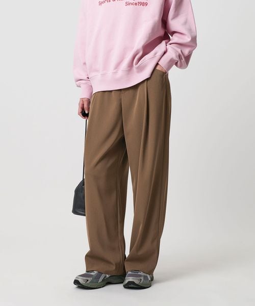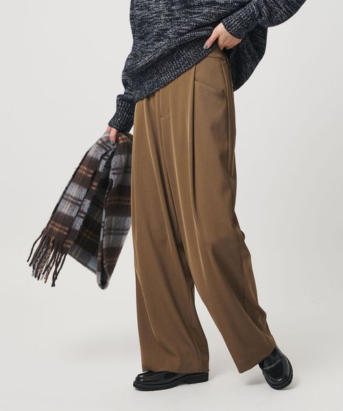 適度な緩さがありながら、すっきりと見えるレッグラインが魅力のワイドパンツ。