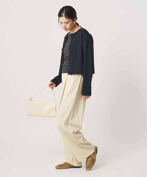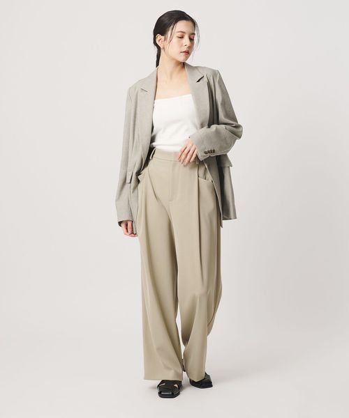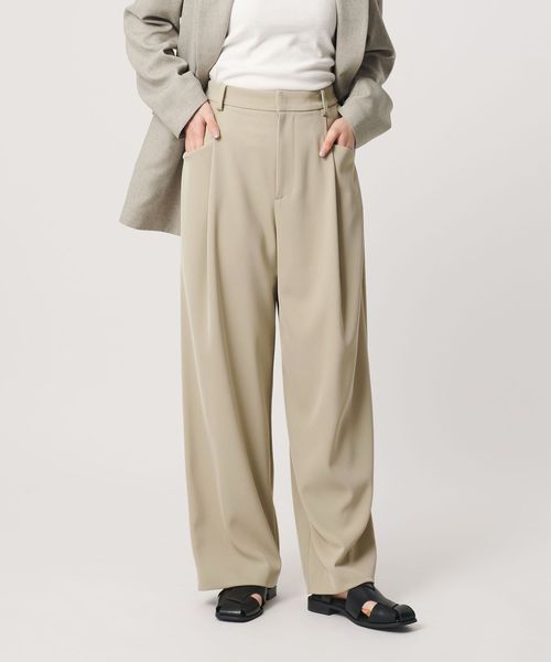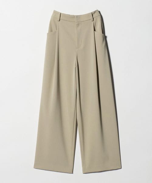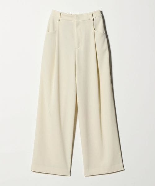 適度な緩さがありながら、すっきりと見えるレッグラインが魅力のワイドパンツ。