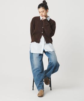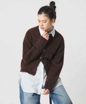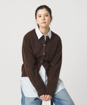 フォックスカシミヤのやさしい毛足の素材感が着こなしのアクセントになるクルーネックカーディガン。