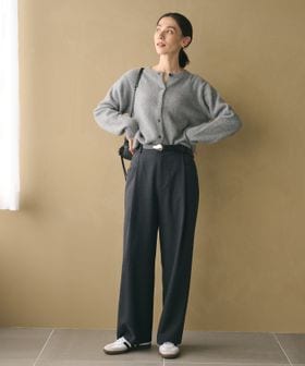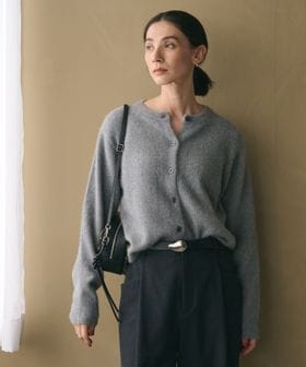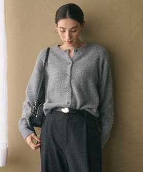 フォックスカシミヤのやさしい毛足の素材感が着こなしのアクセントになるクルーネックカーディガン。