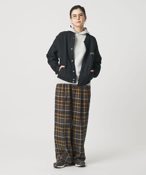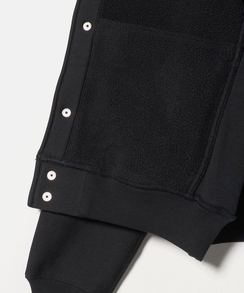 すっきりとしたサイズ感のスウェット生地のボディには、スナップボタンやリブ襟などブルゾンのディテールが取り入れられています。