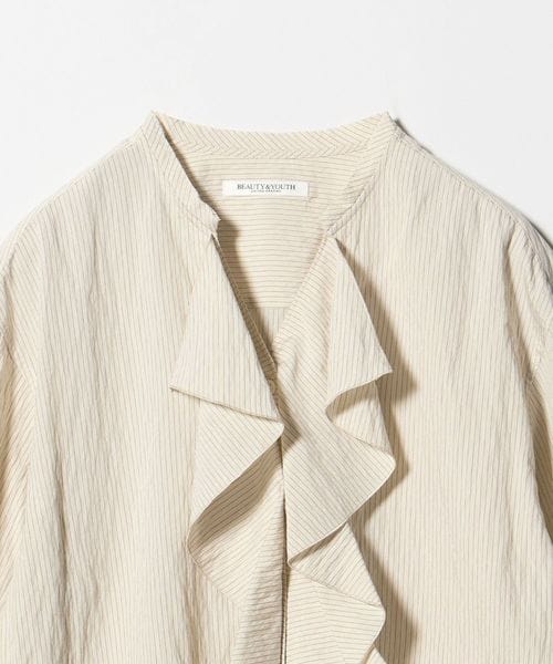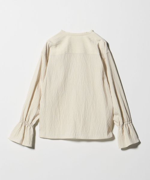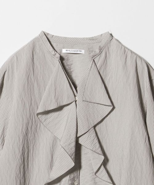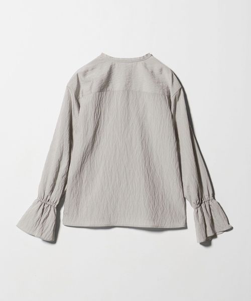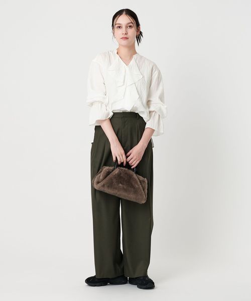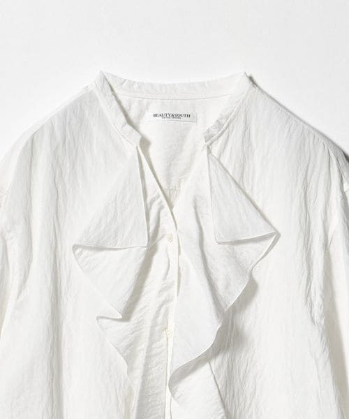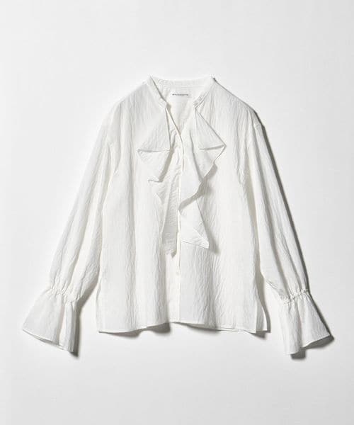 華やかなラッフルフリルがポイントのブラウス。