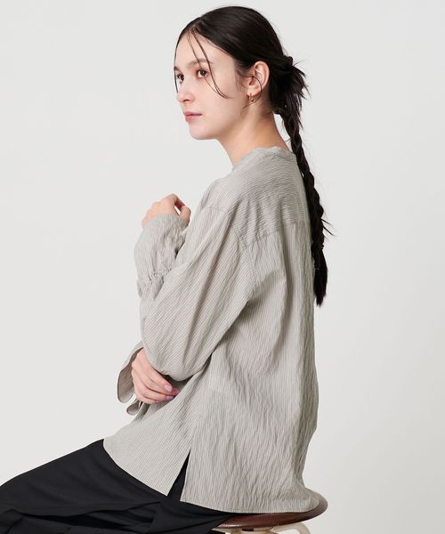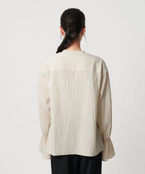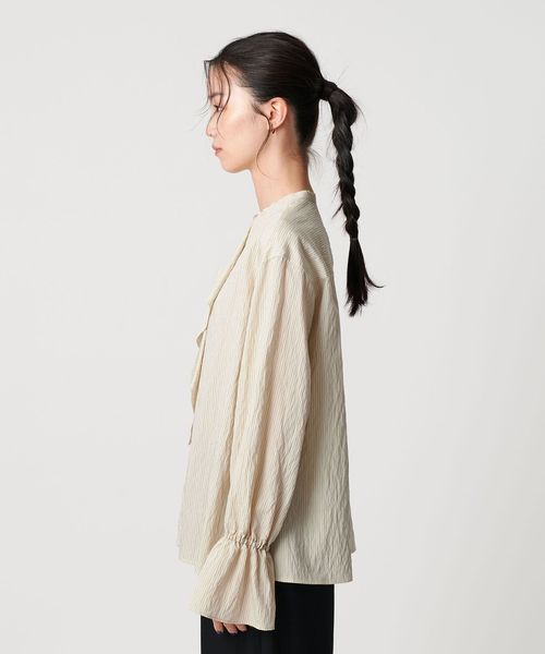 メイントップスとしてはもちろん、ジャケットのインにも映えるロングシーズン着回しの効くブラウスです。