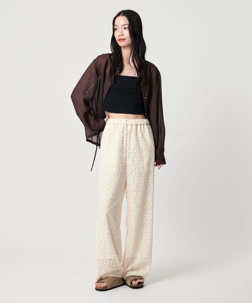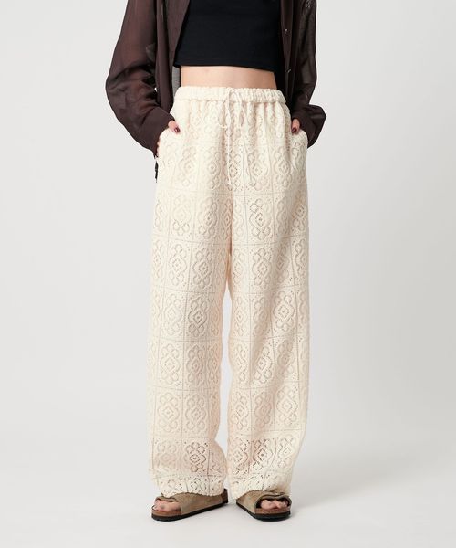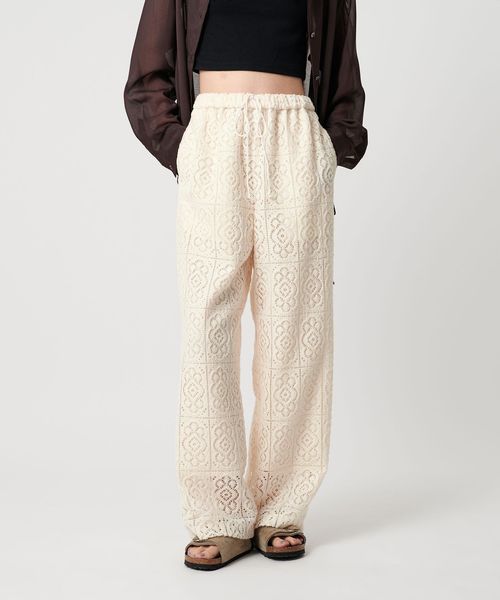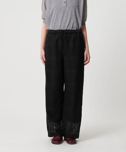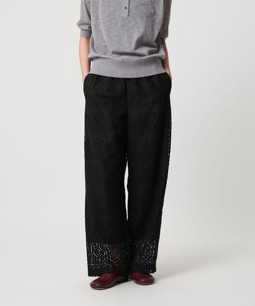 表面感が特徴的な秋らしいムードのレース生地を用いて、イージーパンツをお作りしました。
