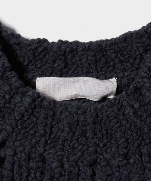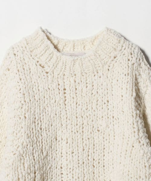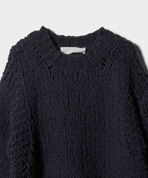 ふっくらとしたざっくり編みで仕上げた立体的なフォルムに、袖のカーブラインが特徴的なデザイン。