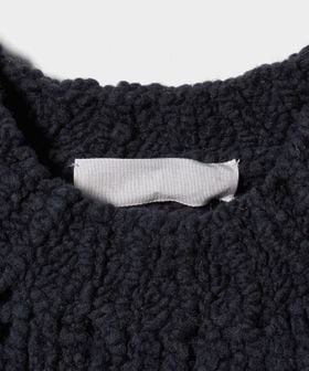 ふっくらとしたざっくり編みで仕上げた立体的なフォルムに、袖のカーブラインが特徴的なデザイン。