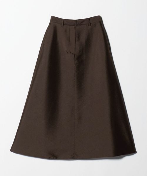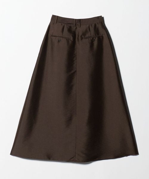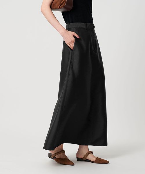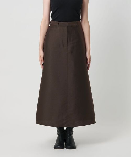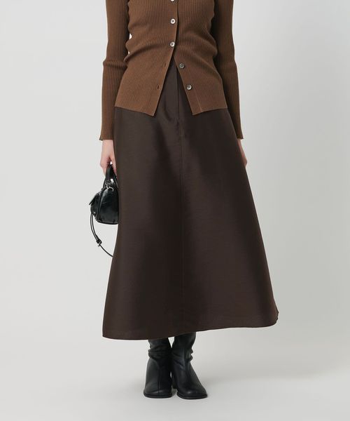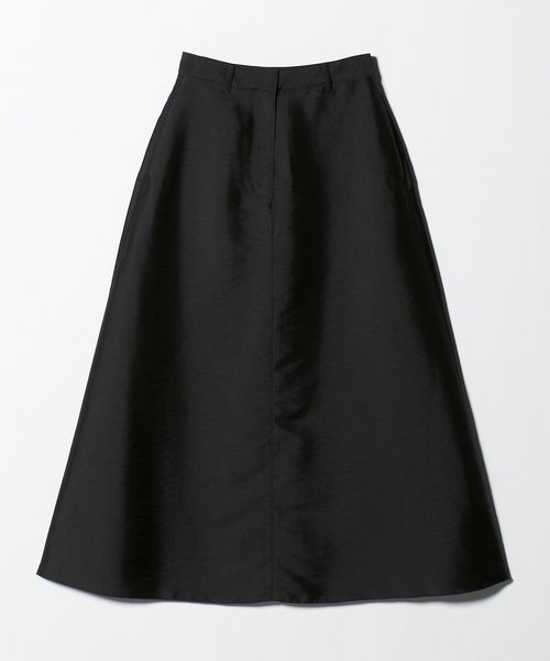 ハリと微光沢のある生地感でAラインシルエットのフレアスカートをお作りしました。
