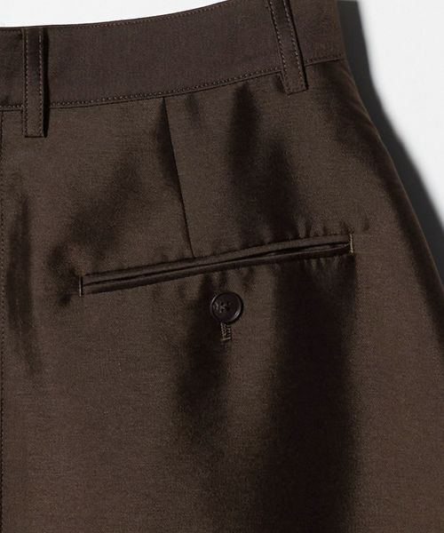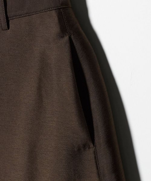 フォルムをきれいに見せるハリのあるポリエステルとナイロンの素材を使用し、光沢感がポイントになります。