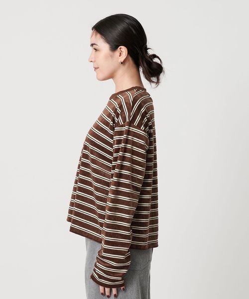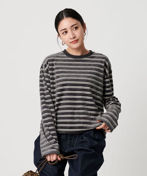 ポリエステルコットン ベロアボーダー ロングスリーブTシャツ