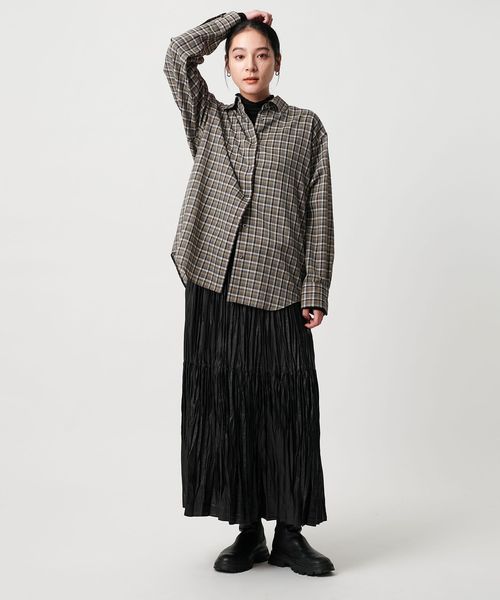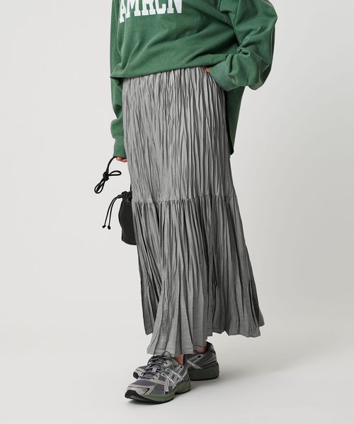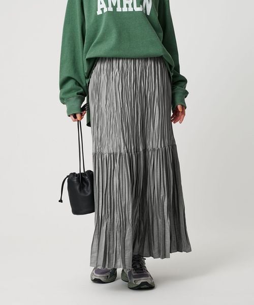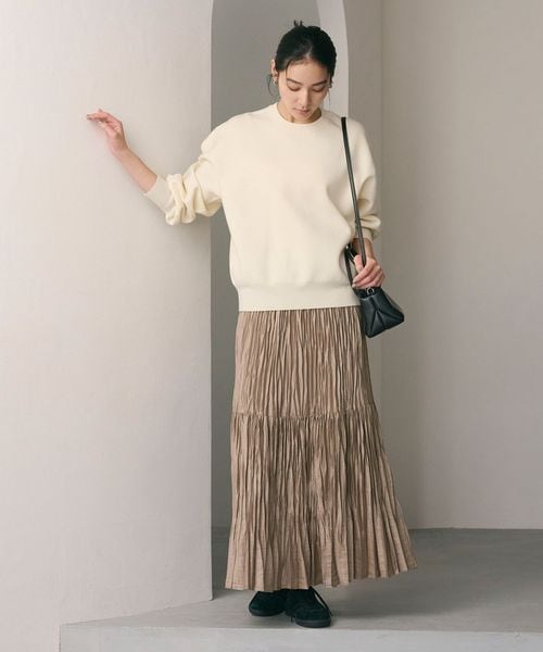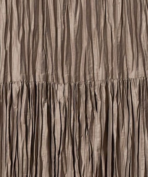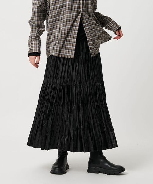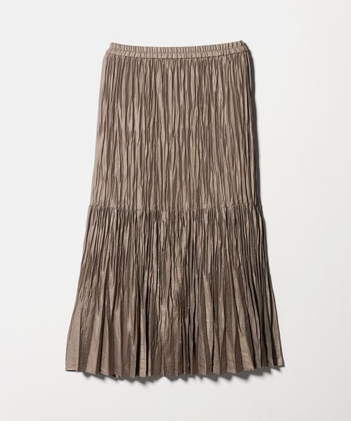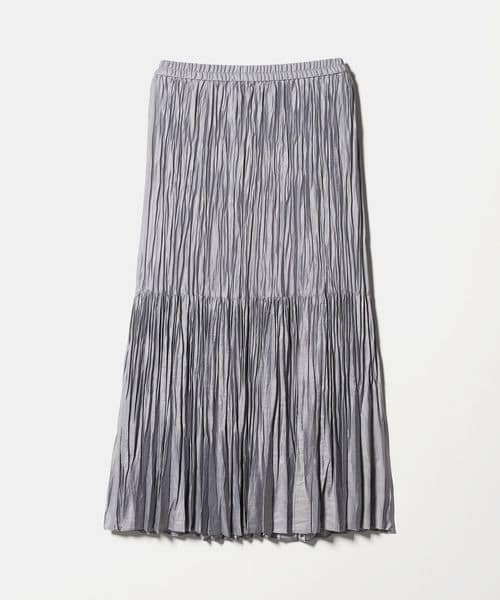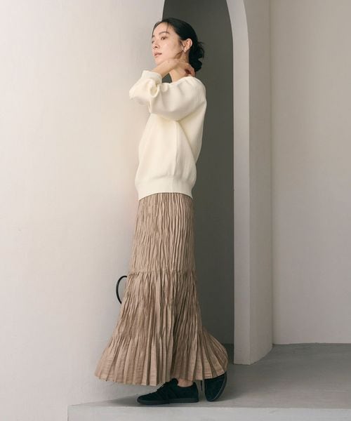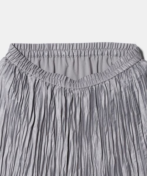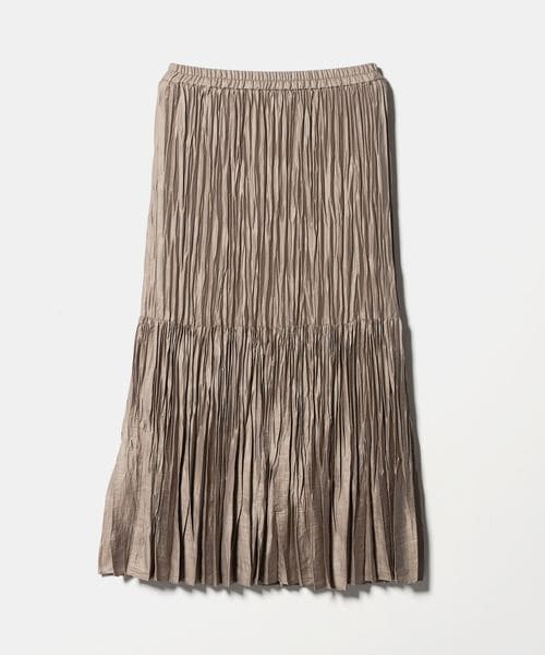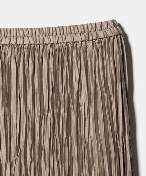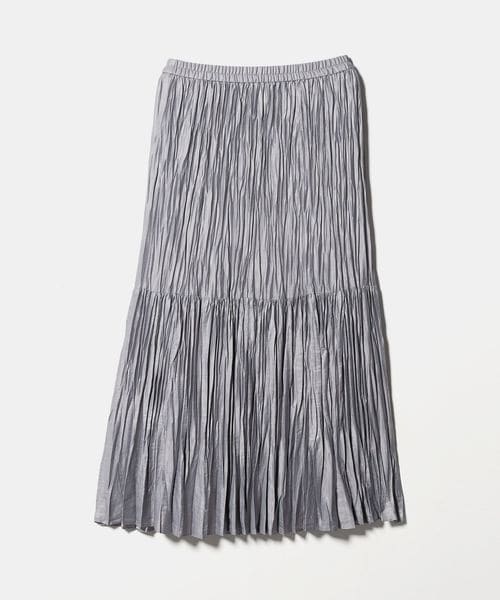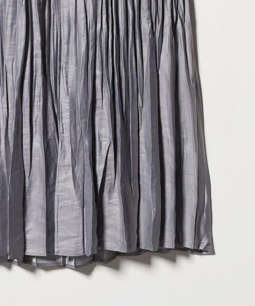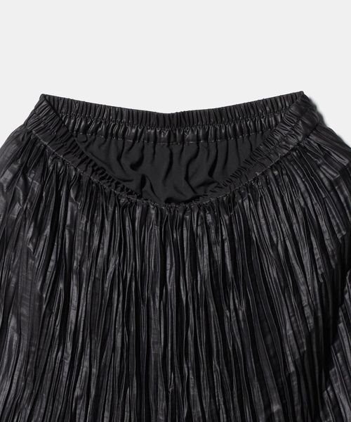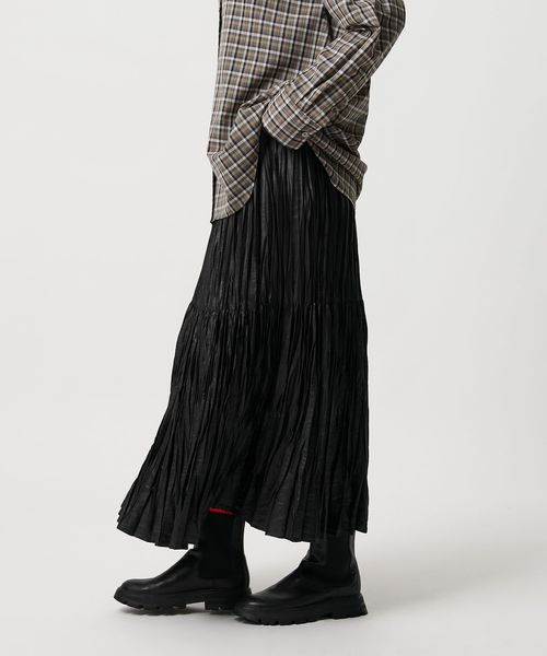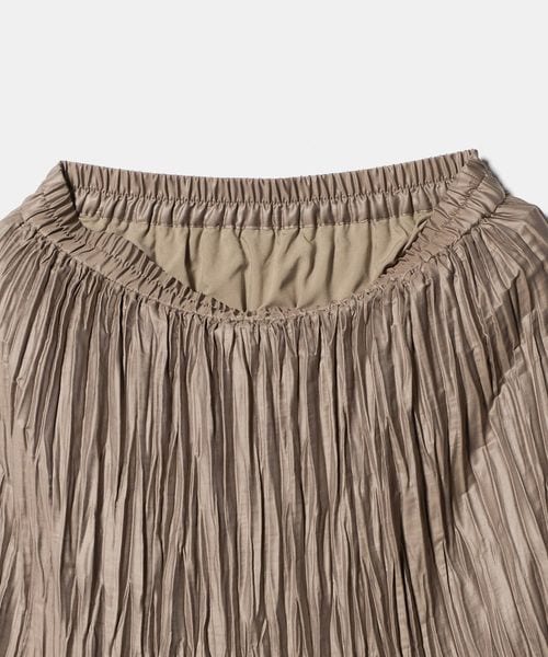 裾の分量を抑えランダムなプリーツで仕上げた、カジュアルな着こなしに取り入れやすいデザイン。