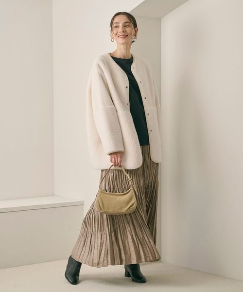 ウールコートを合わせて素材のコントラストを楽しんだり、足元はブーツなど秋冬ならではのコーディネートをぜひ。