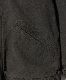 ワークスタイルに忠実なディテールを備えつつ、ざっくりとしたサイズ感と染色加工による独特の風合いで、昔ながらの雰囲気を演出しています。