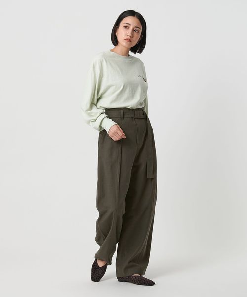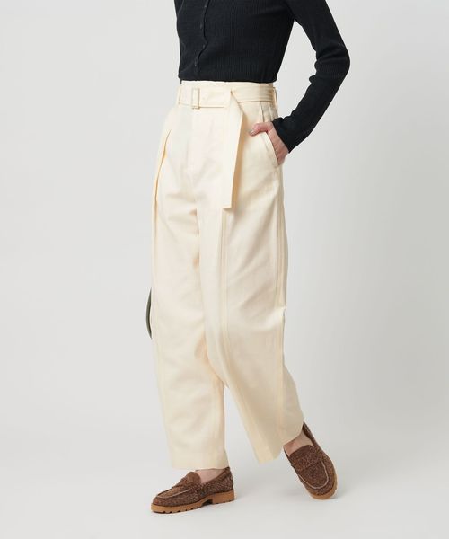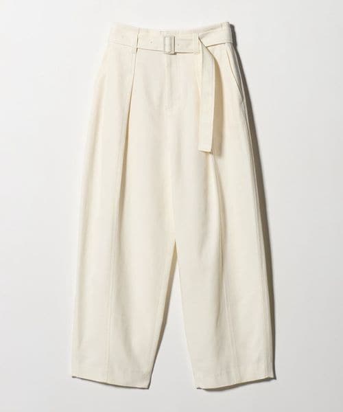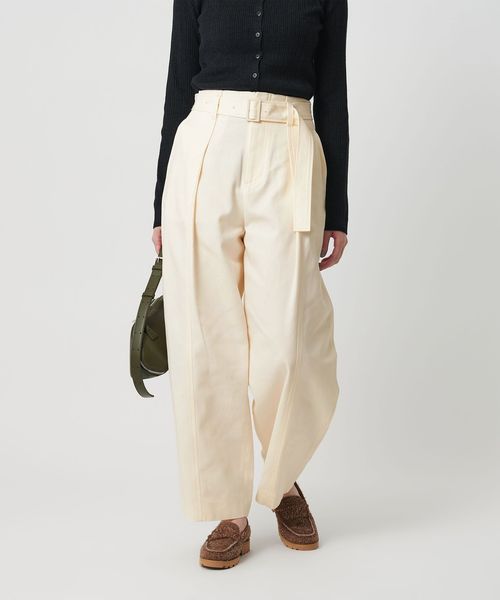 ほどよくゆとりのあるサイジングに、裾にかけて緩やかなカーブラインを描く立体的なフォルムが、旬のムード漂う大人カジュアルなスタイルを演出します。