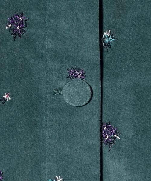 秋のムードが感じられる別珍生地に軽やかな小花柄の刺繍を施しました。